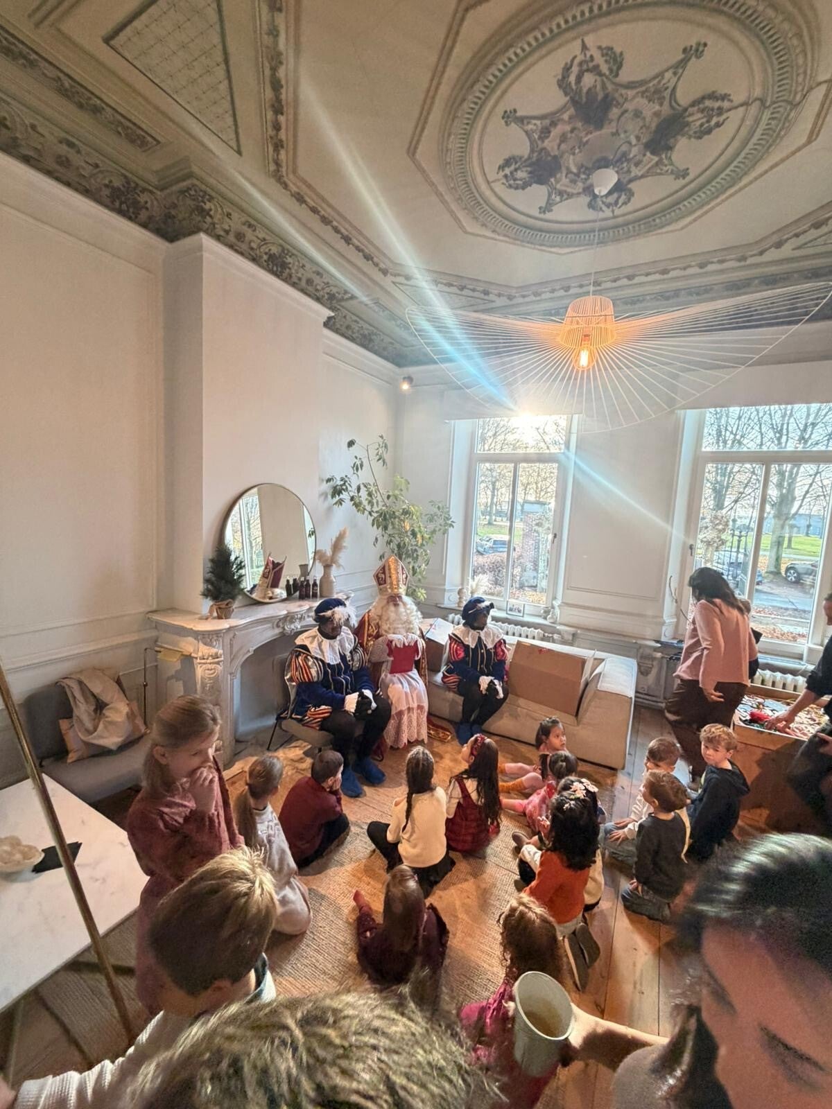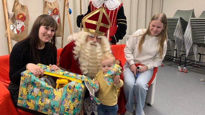 Sinterklaas en zijn Pieten op bezoek bij de kinderen thuis.